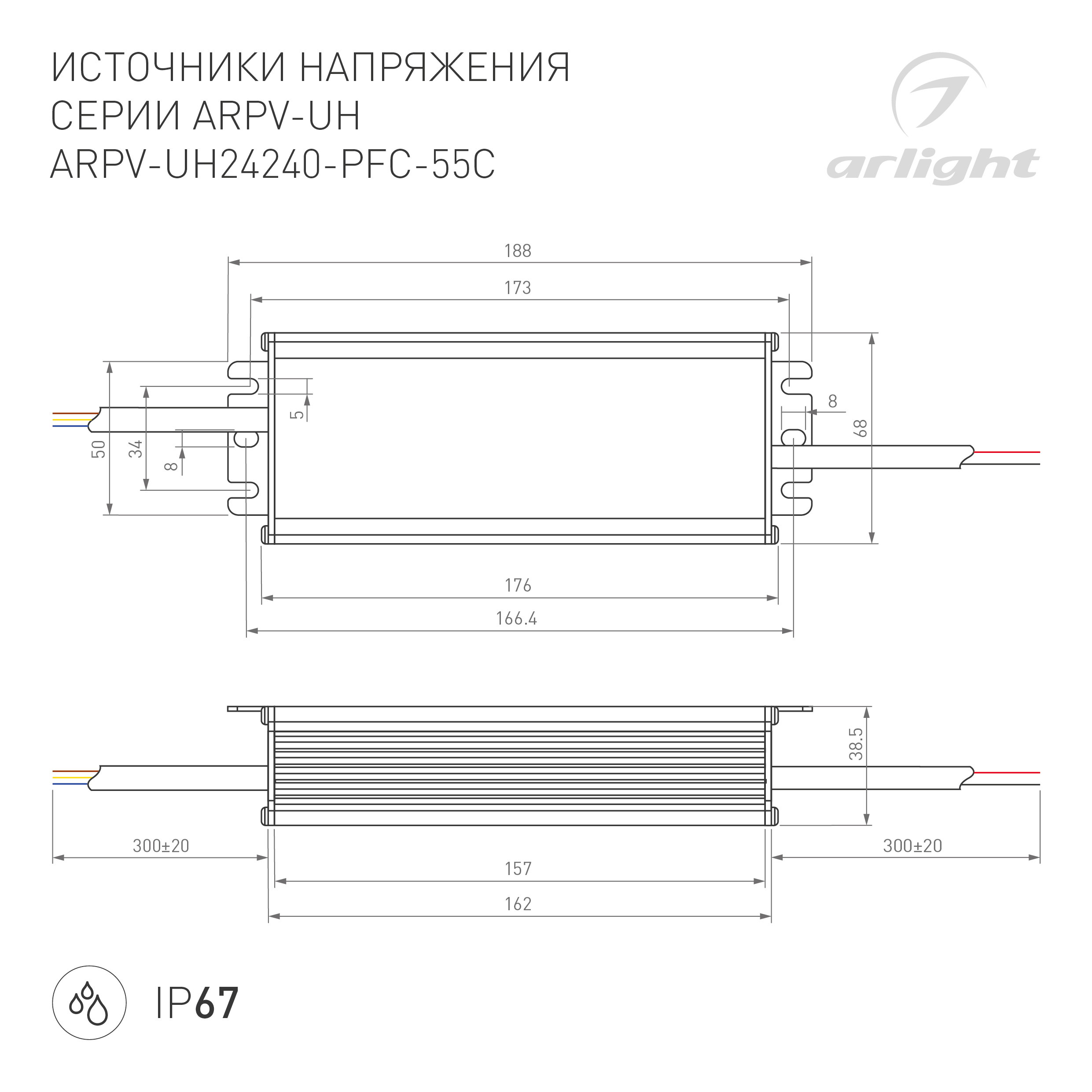 Блок питания ARPV-UH24240-PFC-55C (24V, 10.0A, 240W) (Arlight, IP67 Металл, 5 лет)