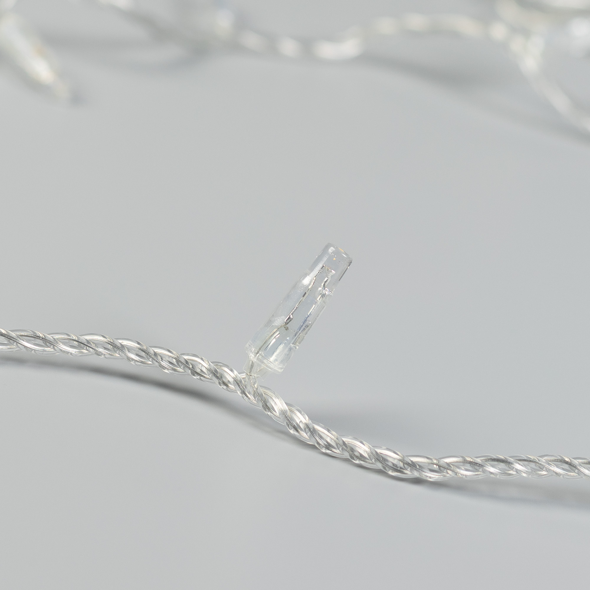 Универсальная светодиодная гирлянда "НИТЬ" серии Classic, предназначенная для декорирования и создания праздничного настроения как внутри помещений, так и снаружи (степень пылевлагозащиты IP65 позволяет размещать гирлянду на улице под навесом). Имея длину 10000 мм, она может использоваться для оформления средних и больших площадей. Универсальные соединительные разъемы позволяют наращивать длину до 50 м без использования дополнительных аксессуаров. Прозрачная вогнутая линза и эффект непрерывного свечения обеспечивают яркое, равномерное освещение, выделяя украшаемые объекты. Лазурный свет, в сочетании с холодным белым, помогает создать необходимую атмосферу для декоративного объекта. Провод прозрачный изготовлен из ПВХ. Аксессуар для подключения гирлянды к сети приобретается отдельно.