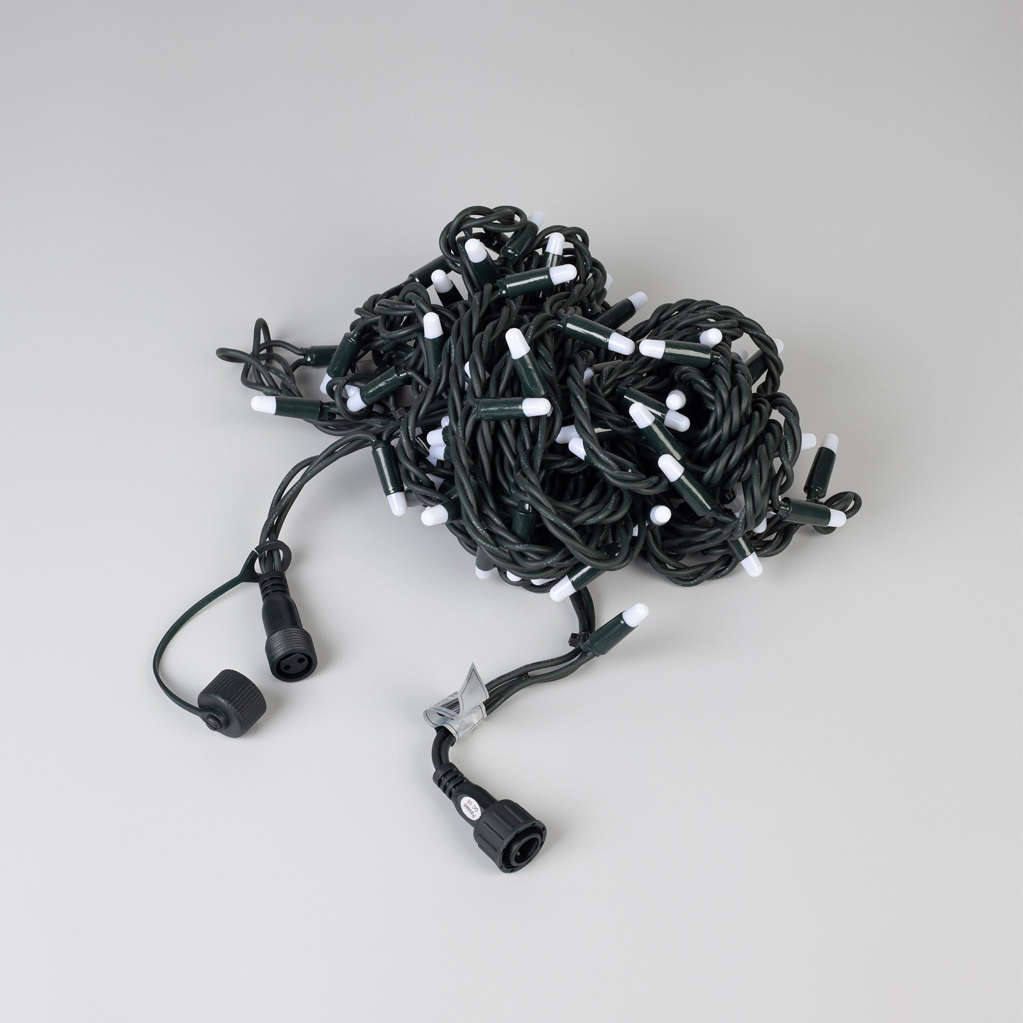 Универсальная светодиодная гирлянда "НИТЬ" серии Pro, предназначенная для декорирования и создания праздничного настроения как внутри помещений, так и снаружи (степень пылевлагозащиты IP65 позволяет размещать гирлянду на улице под навесом). Имея длину 10000 мм, она может использоваться для оформления средних и больших площадей. Универсальные соединительные разъемы позволяют наращивать длину до 50 м без использования дополнительных аксессуаров. Выпуклая молочно-белая линза и эффект медленного мерцания каждого светодиода обеспечивают мягкое, динамичное и равномерное освещение украшаемых объектов. Тёплый белый свет помогает создать необходимую атмосферу для декоративного объекта. Провод изготовлен из каучука и окрашен в темно-зеленый цвет. Аксессуары для подключения и управления приобретаются отдельно.