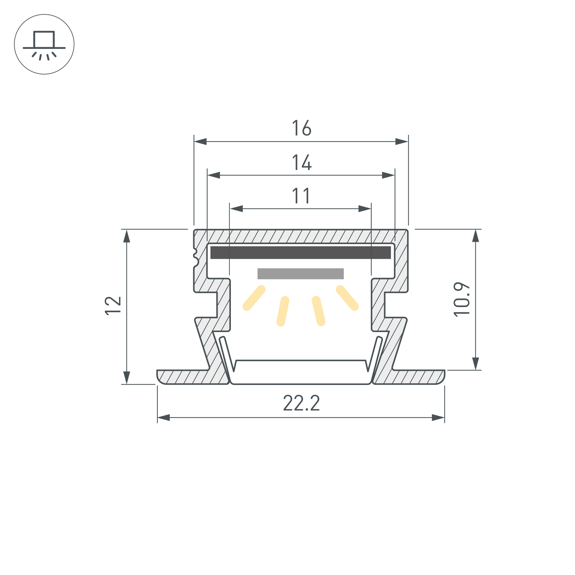 Встраиваемый профиль черного цвета с накладным фланцем из анодированного алюминия для контурной подсветки. Габаритные размеры профиля составляют 3000 мм в длину, 22,2 мм в ширину и 12 мм в высоту. Площадка для установки светодиодных лент позволяет использовать ленту шириной до 14 мм и мощностью до 16,4 Вт/м. Это обеспечивает гибкость в выборе светодиодных лент и создает потрясающие световые решения. Экраны, заглушки и другие аксессуары не включены в комплект и приобретаются отдельно. Цена указана за 1 метр профиля. Отличное решение для создания современных световых проектов.