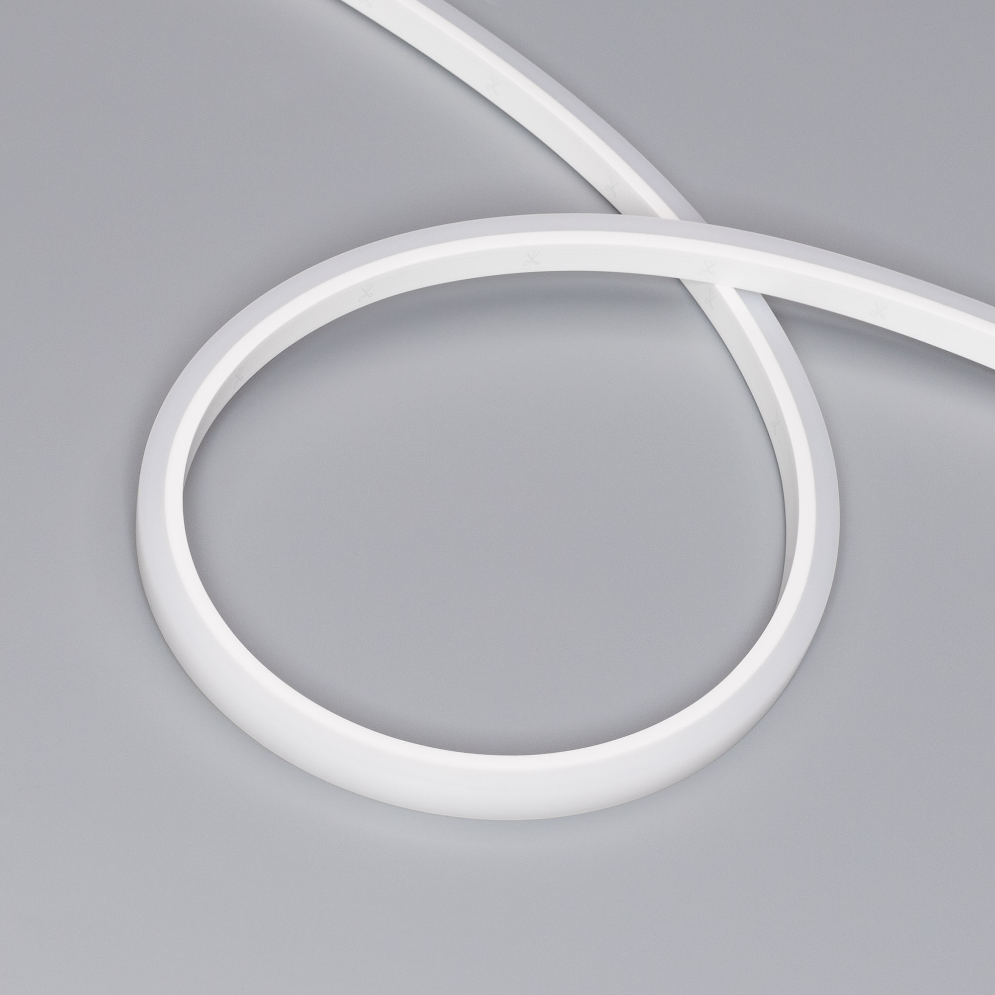 Гибкая герметичная лента (неон серии WAVE), сечение 10×10 мм. Светодиоды SMD2835 144 шт/м. Цвет свечения ТЕПЛЫЙ БЕЛЫЙ (2700 K), индекс цветопередачи CRI>90, световой поток 320 лм/м, угол излучения 170°. Мощность 5 Вт/м, питание 24 В. Оболочка из Полиуретана (PU). Класс пылевлагозащиты IP68. Размеры 5000×10×10 мм. Не подлежит резке. Вертикальный изгиб TOP, минимальный радиус изгиба 75 мм. Катушка 5 м. Цена за 1 м. Гарантия 3 года.
