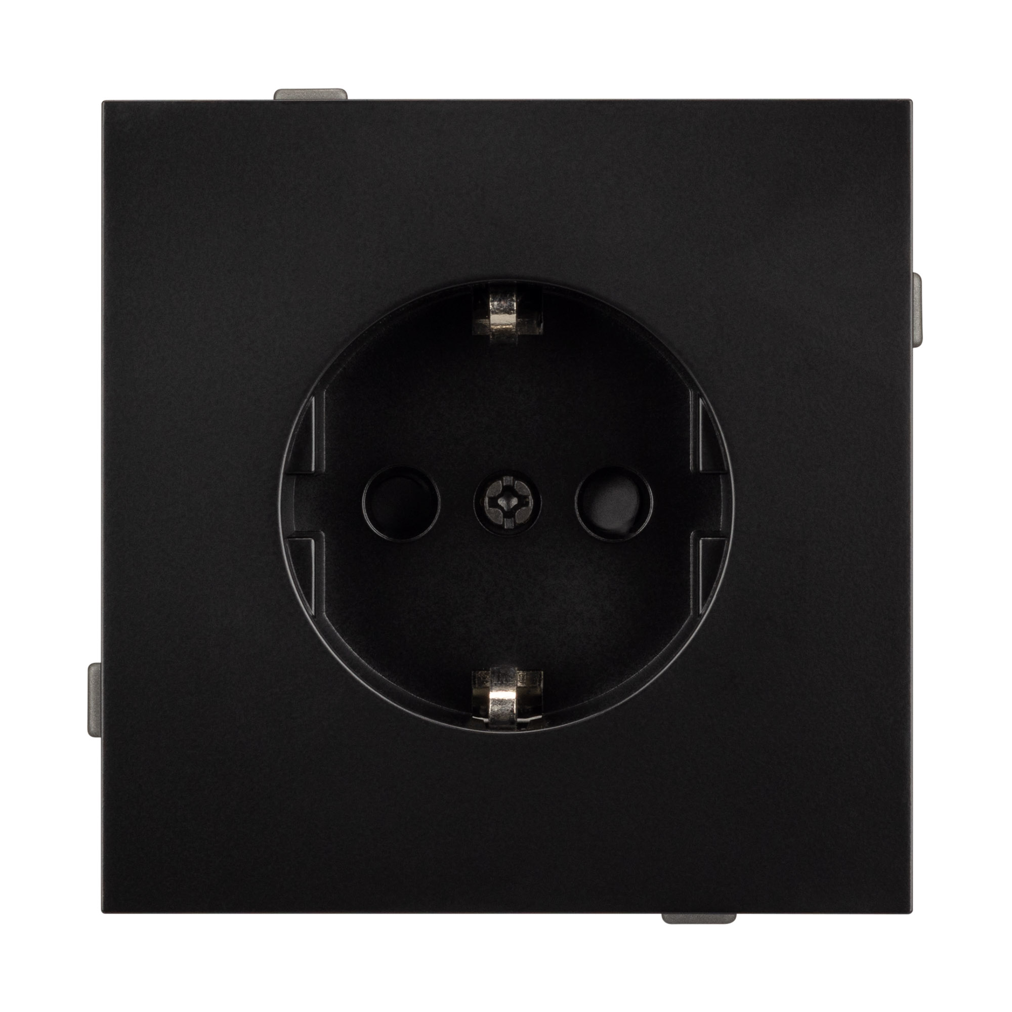 Механизм розетки с заземлением на 1 пост. Цвет - черный. Без фронтальной рамки. Уровень пылевлагозащиты IP20. Розетка устанавливается в стандартный подрозетник круглого сечения диаметром 60мм. Габаритные размеры: длина 71 мм, ширина 71 мм, высота 44 мм. Гарантийный срок 10 лет.