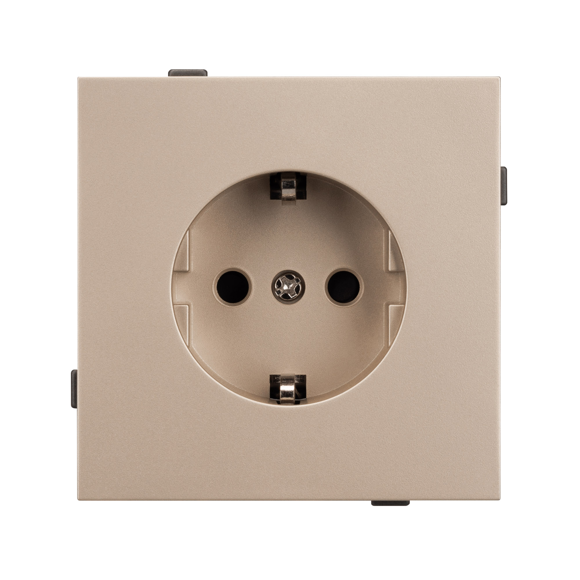 Механизм розетки с заземлением на 1 пост. Цвет - золотой. Без фронтальной рамки. Уровень пылевлагозащиты IP20. Розетка устанавливается в стандартный подрозетник круглого сечения диаметром 60мм. Габаритные размеры: длина 71 мм, ширина 71 мм, высота 44 мм. Гарантийный срок 10 лет.