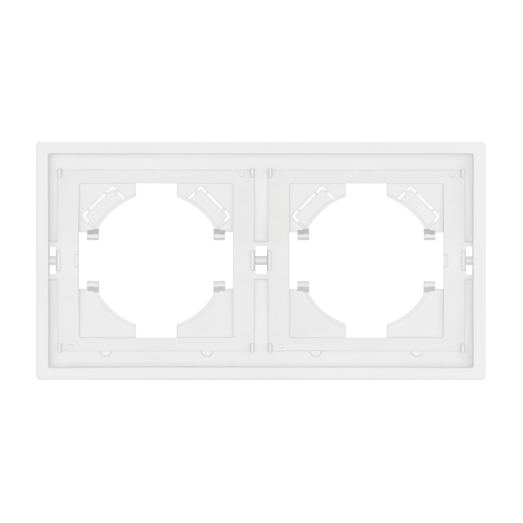 Рамка пластиковая на 2 поста, под встраиваемый механизм. Цвет - белый, с Soft-Touch покрытием. Среднего уровня герметичности IP20. Ориентация монтажа горизонтальная. Габаритные размеры: длина 150 мм, ширина 80 мм, высота 9 мм. Гарантийный срок 12 мес.