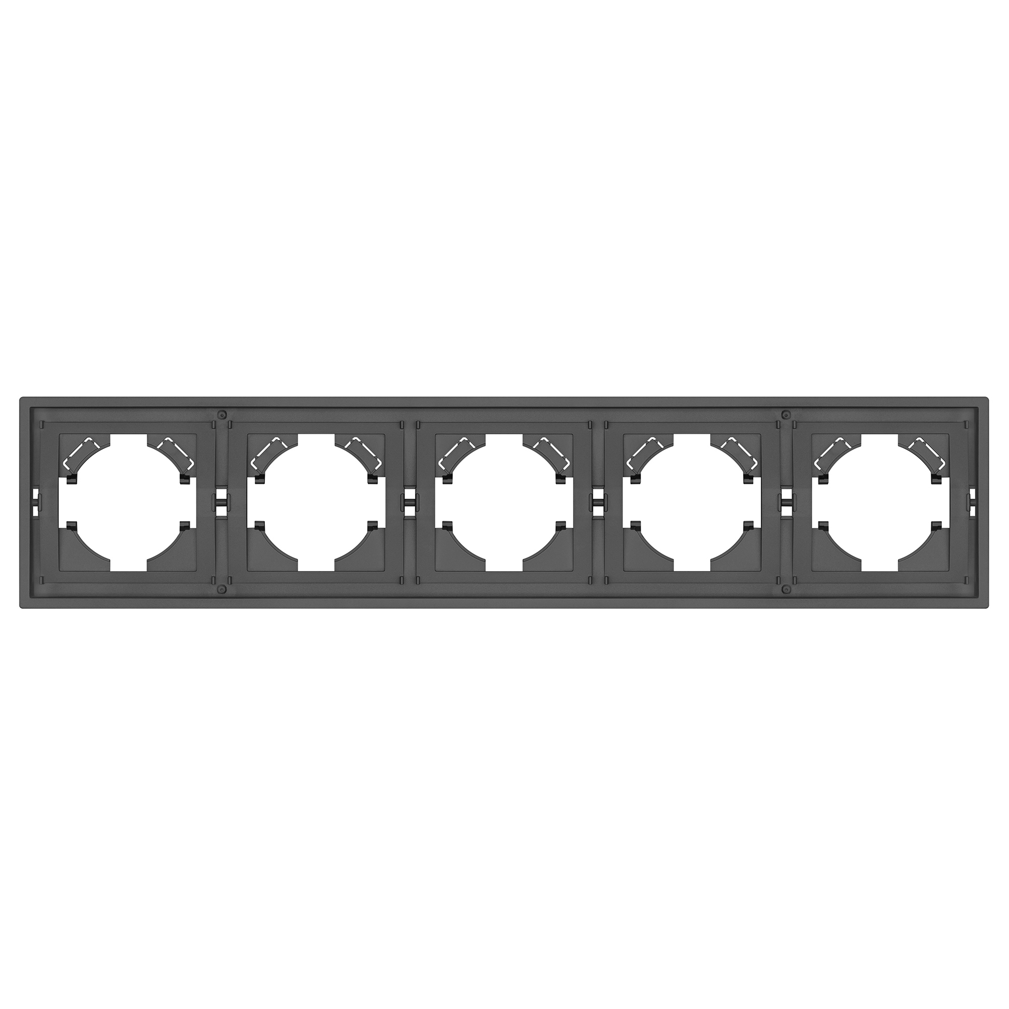 Рамка пластиковая на 5 постов, под встраиваемый механизм. Цвет - серый, с Soft-Touch покрытием. Среднего уровня герметичности IP20. Ориентация монтажа горизонтальная. Габаритные размеры: длина 364 мм, ширина 80 мм, высота 9 мм. Гарантийный срок 12 мес.