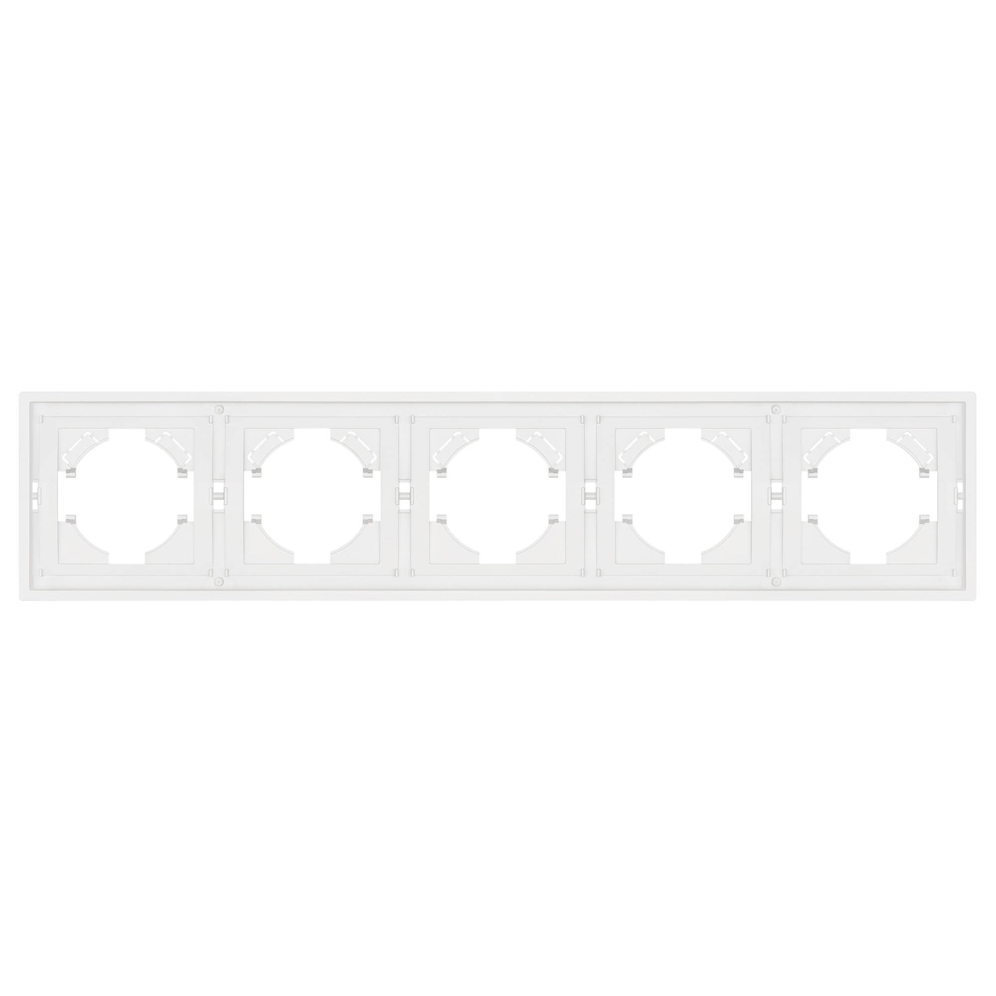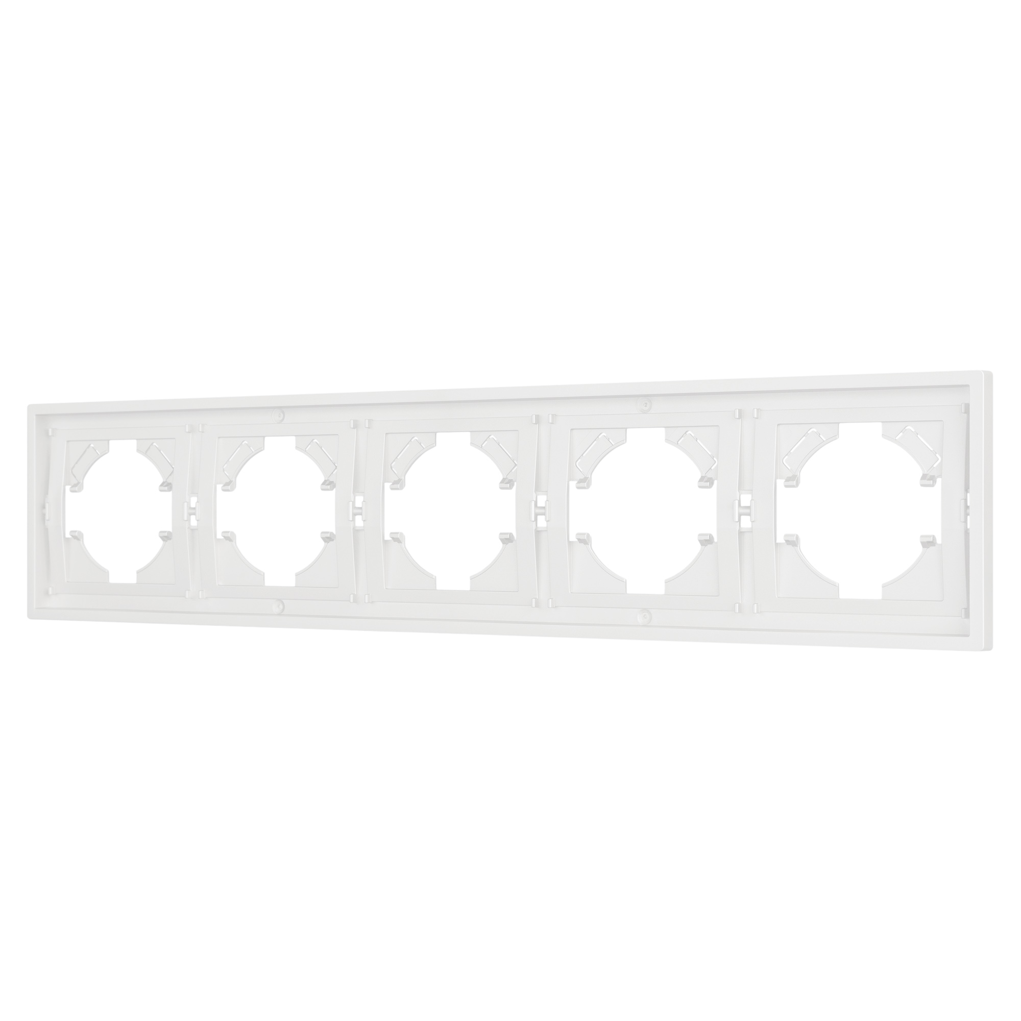 Рамка пластиковая на 5 постов, под встраиваемый механизм. Цвет - белый, с Soft-Touch покрытием. Среднего уровня герметичности IP20. Ориентация монтажа горизонтальная. Габаритные размеры: длина 364 мм, ширина 80 мм, высота 9 мм. Гарантийный срок 12 мес.