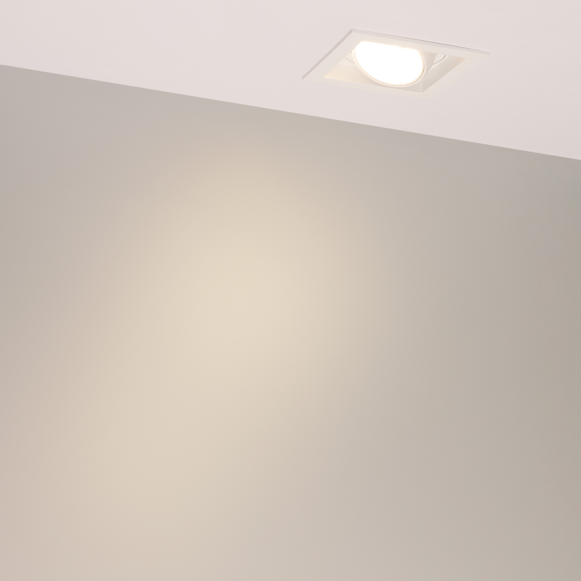 Встраиваемый карданный светильник. Мощность 20 Вт, св. поток 2067 лм, 103 лм/Вт, тёплый 3000 K, CRI>92, угол 20°, напряжение питания 230 В. Белый корпус из алюминия, белая вставка, степень защиты IP20. Размер: длина 117 мм, ширина 117 мм, высота 105 мм. Монтаж встраиваемый, установочное отверстие: длина 95 мм, ширина 95 мм. Драйвер 24-42 В, 500 мА, пульсация <2%.