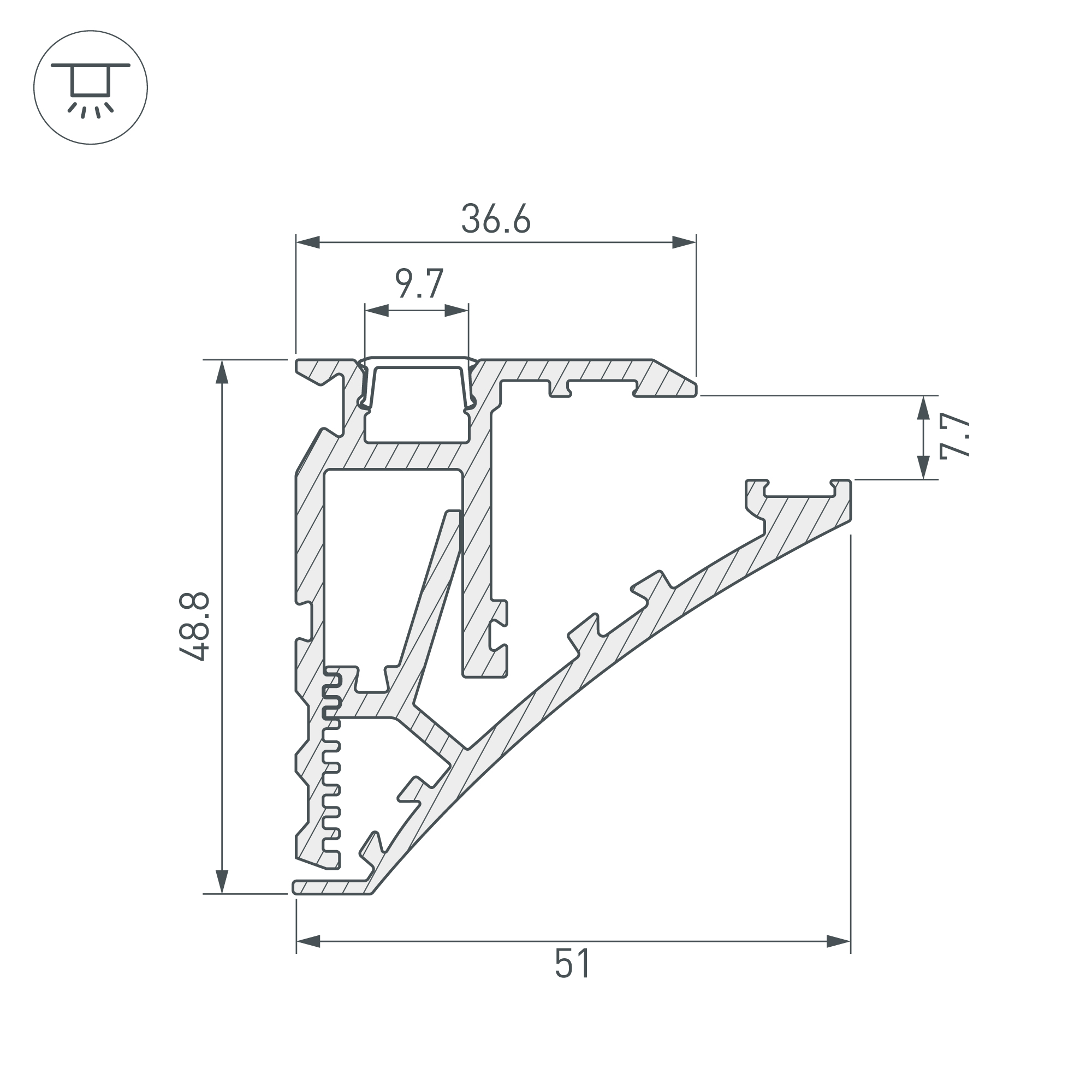 Алюминиевый анодированный профиль для монтажа и подсветки полок из стекла, пластика, дерева толщиной от 8 мм до 16 мм. Максимальная ширина полки 33 см. Максимально допустимый вес: 5 кг на каждый 1 м длины. Свечение в двух направлениях: подсветка стекла, подсветка прилегающей стены (наверх). Габаритные размеры (L×W×H): 2000x51x61 мм. Ширина площадок для лент 8 и 12 мм. Заглушки и другие аксессуары приобретаются отдельно. Цена за 1 метр.