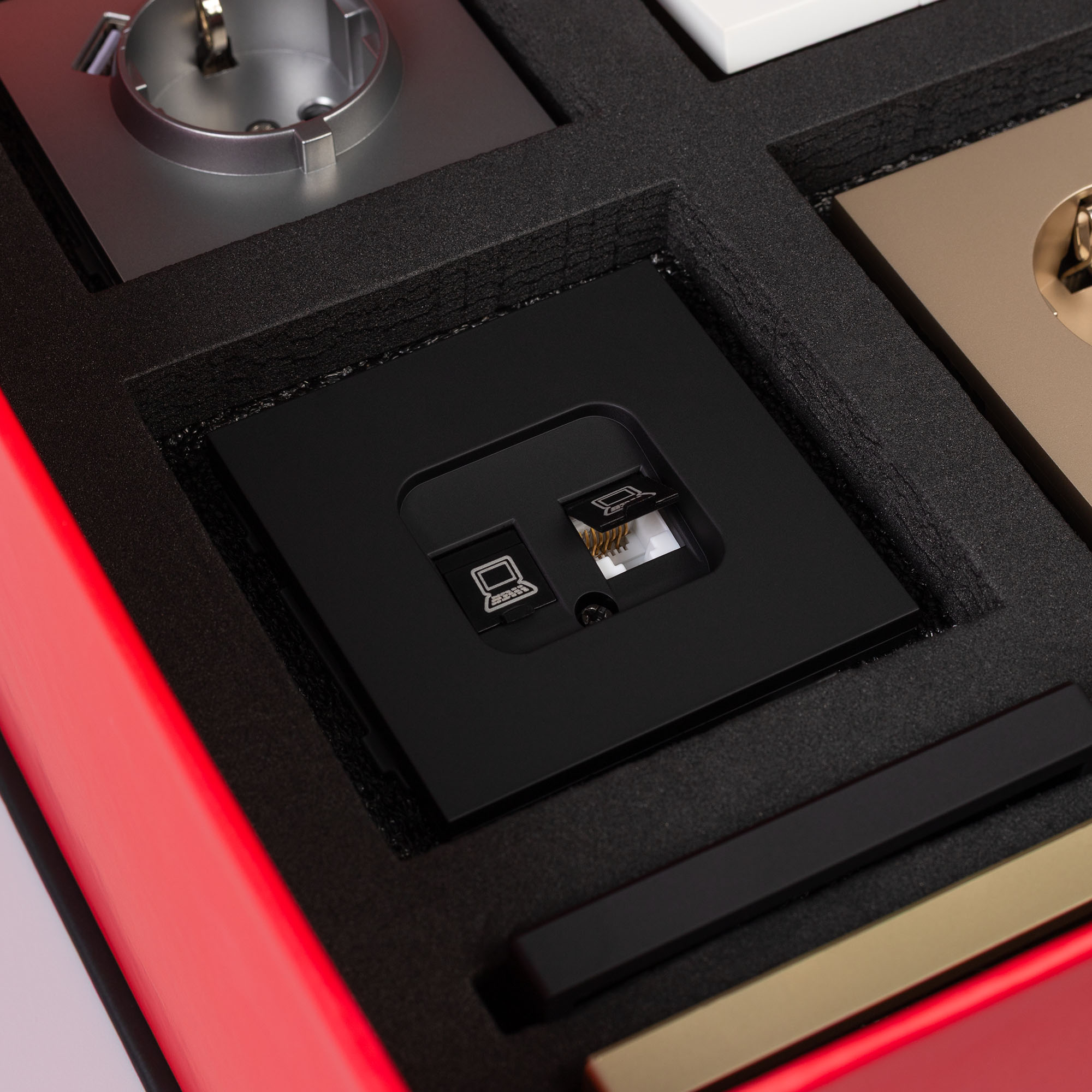 Механизм компьютерной розетки (двойной) в черном цвете - арт.054595