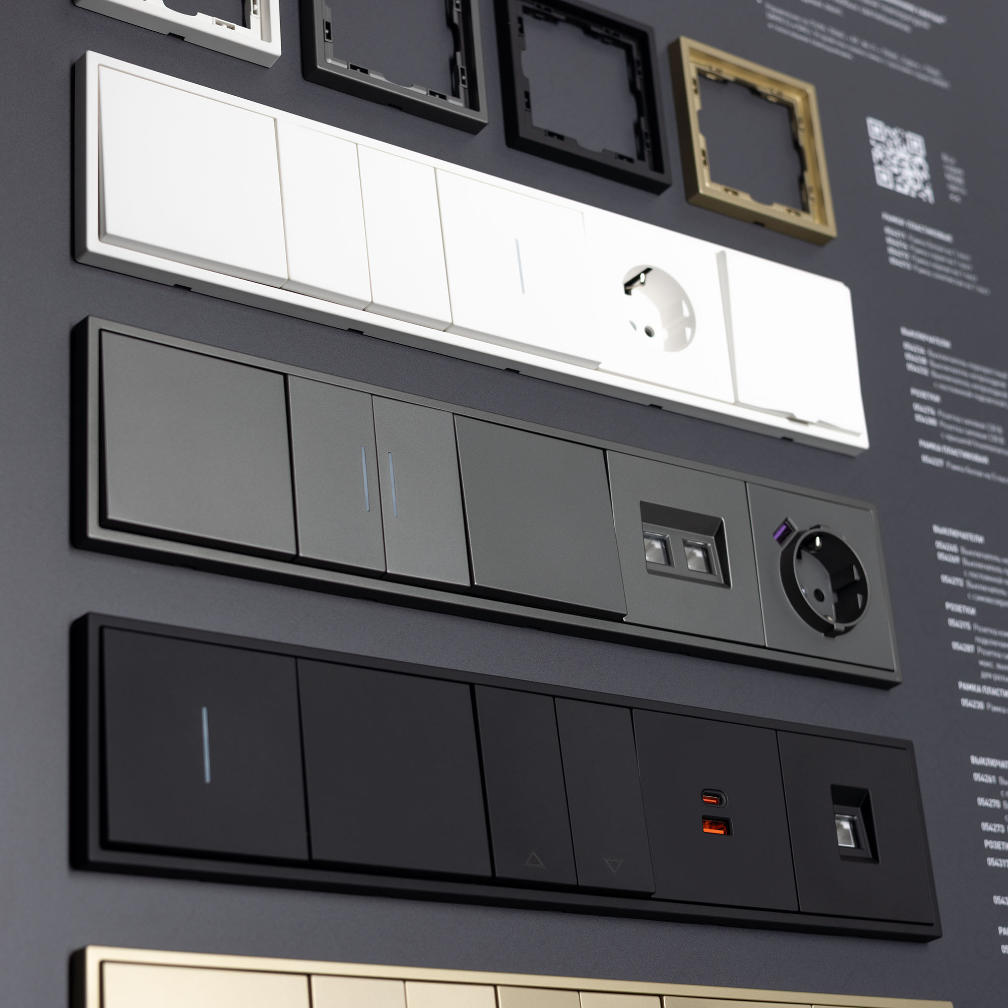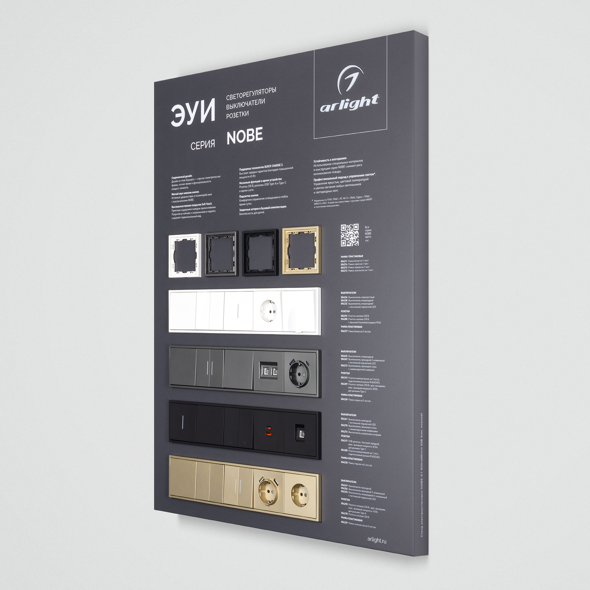 На стенде представлены выключатели и розетки серии Nobe