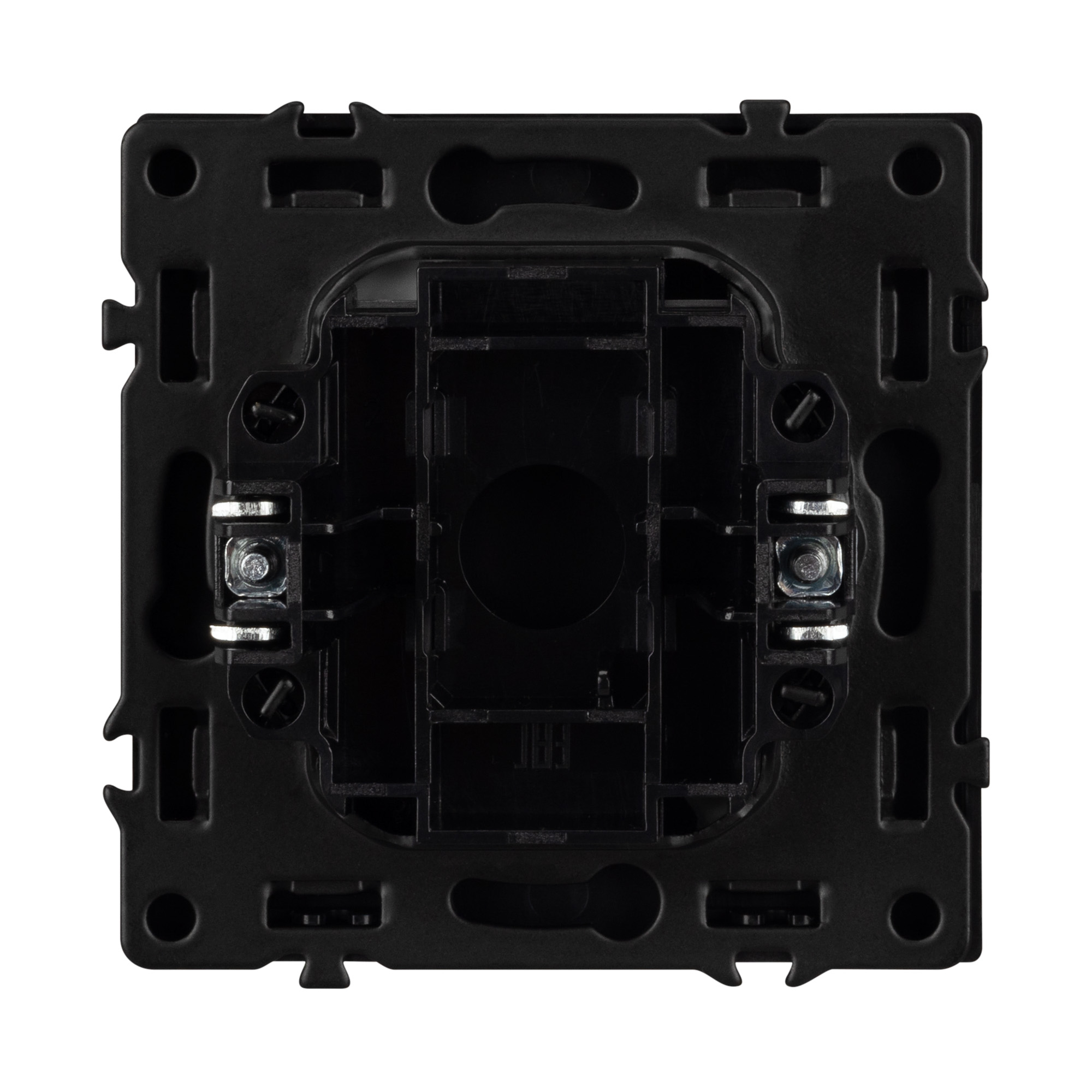 Строгие геометрические линии гармонично сочетаются с функциональностью продуманных механизмов, создавая идеальное решение для дизайн-проектов, где важны как эстетика, так и практичность. Заглушка поста совместима с рамками серии NOBE, создает утонченный минималистичный вид. Скрытый тип монтажа позволяет гармонично встроить в интерьер любого современного дизайн-проекта. Видимая часть выполнена из высококачественного пластика цвета черный оникс и имеет Soft-Touch покрытие, что придает изделию приятные тактильные ощущения и стильный внешний вид. Заглушка предназначена для перекрытия поста под дальнейшее размещение механизма, не имеет питающих элементов и выполняет декоративную функцию. Усиленные распорные лапки двойного захвата надежно фиксируют устройство в установочном подрозетнике круглого сечения диаметром 60мм. Суппорт окрашен в черный матовый цвет и выполнен из металла толщиной 1,5мм, что обеспечивает безопасность и уверенность в установке. На каждой стороне суппорта размещены фиксирующие элементы, позволяющие комбинировать механизмы в системы до 5шт как горизонтально, так и вертикально.