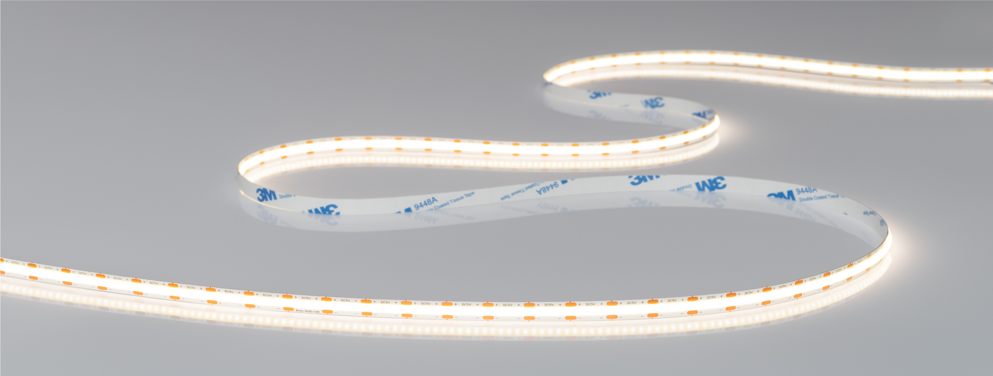 Равномерное свечение За счет заливки люминофором по всей длине ленты образуется равномерное свечение без видимых точек светодиодов даже без применения рассеивающих экранов.