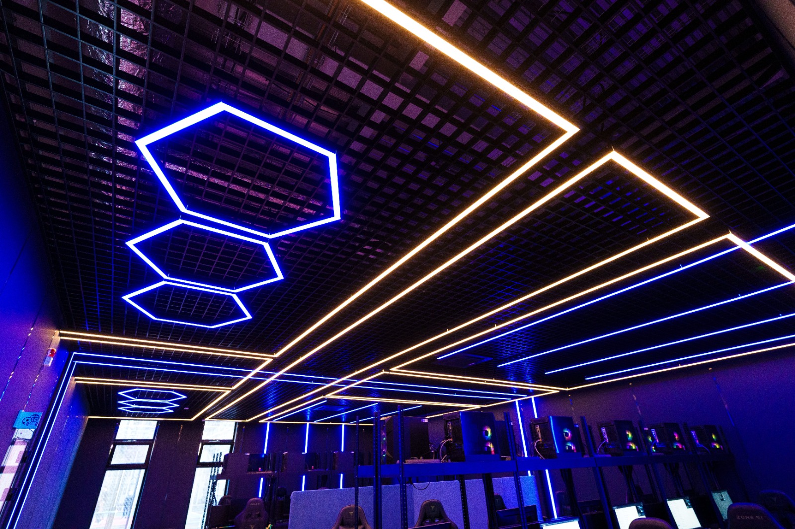Геометрические фигуры из линейных профильных светильников со светодиодной лентой серий RTW и MOONLIGHT отлично вписываются в пространство центра. Минималистичные во внешнем исполнении, они создают основное освещение.