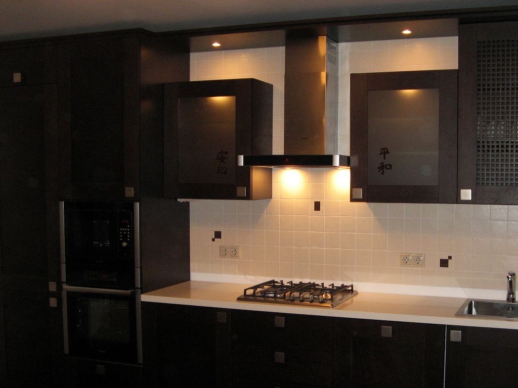 Итак, теперь, пожалуй, вернемся и к подсветке рабочей поверхности. Это действительно один из ключевых моментов организации светового пространства кухни, т.к. если в помещении присутствует  только основное освещение, то зачастую хозяйка, готовя пищу, поворачивается к нему спиной, тем самым закрывая от света рабочую поверхность.  Такой ситуации, конечно, можно избежать, поставив рабочий стол в центр кухни, но, согласитесь, все еще  не часто размеры кухни позволяют это сделать. Выход – дополнительно освещать разделочные столы.
